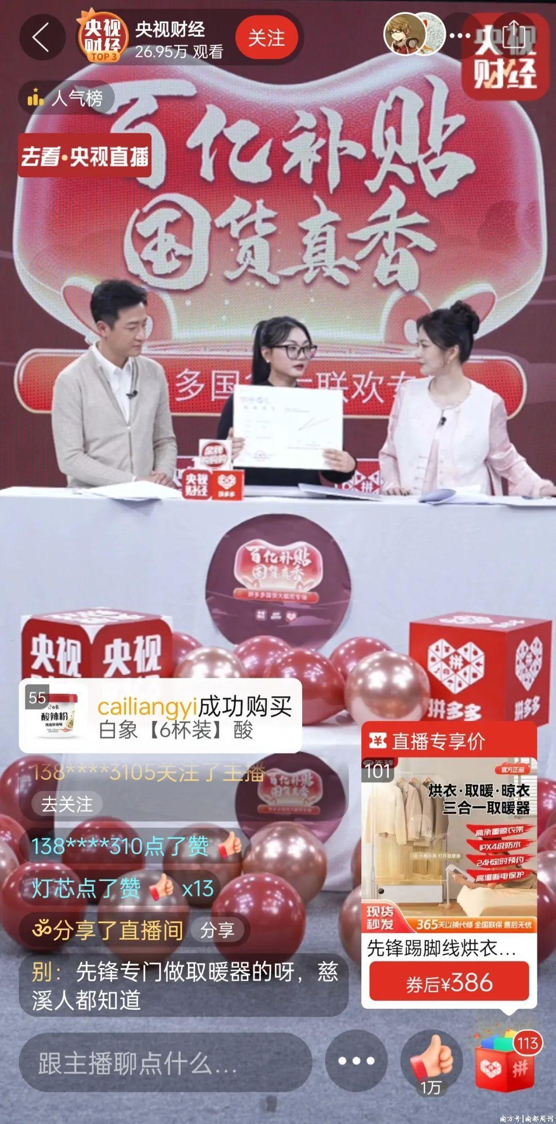▲12月5日,拼多多百亿补贴直播间再次演出国货大团建。(王欣 摄)