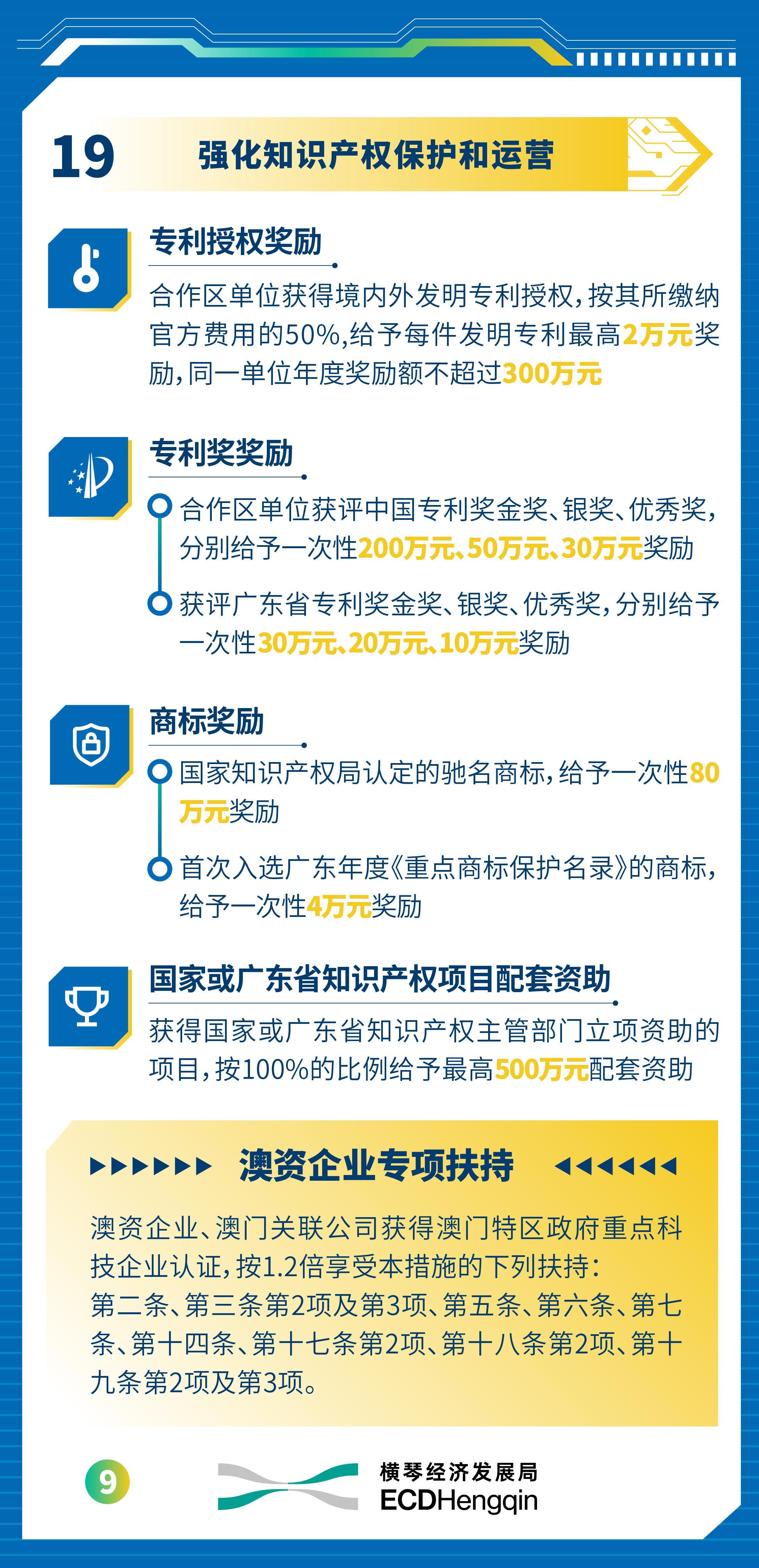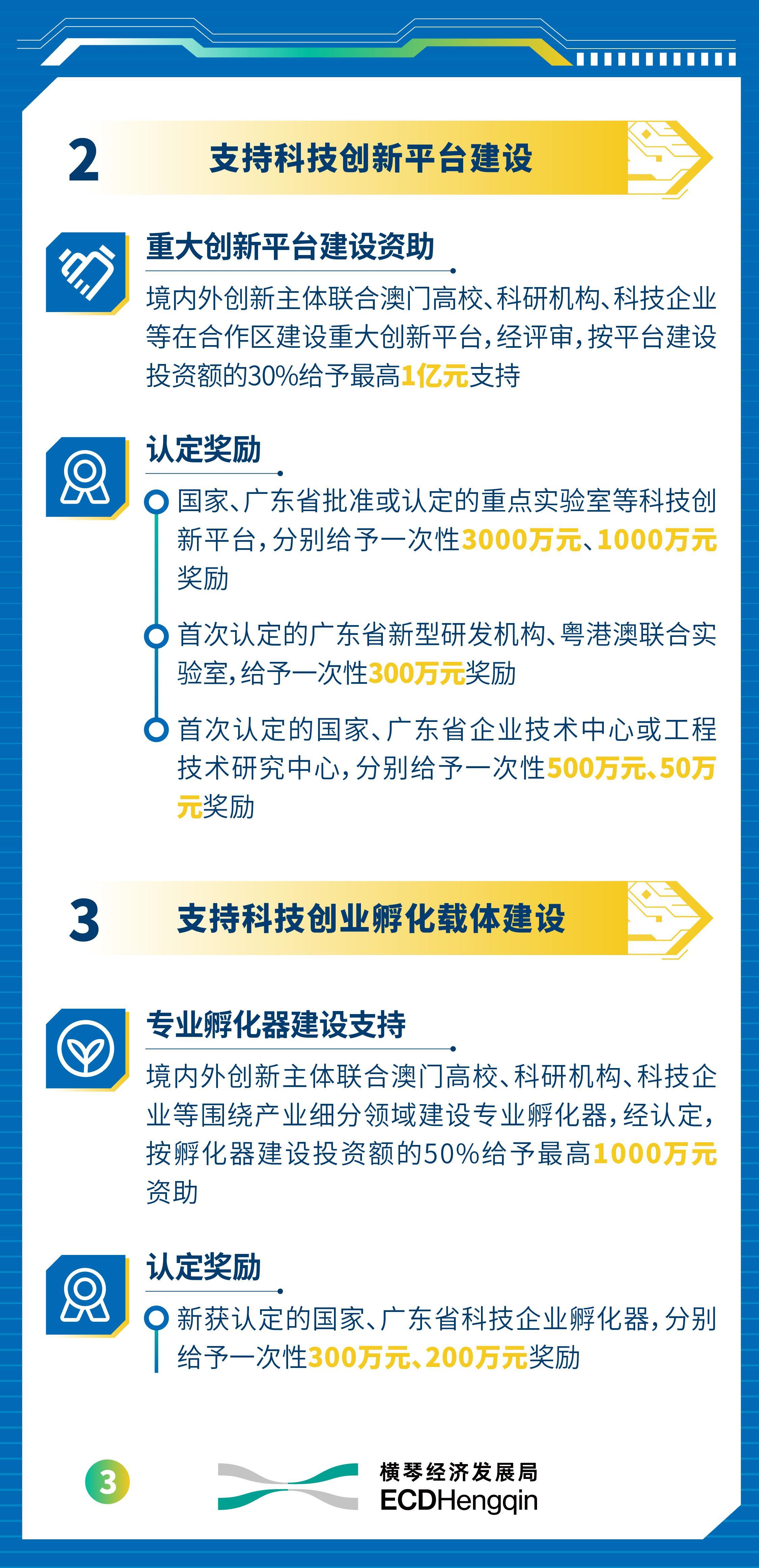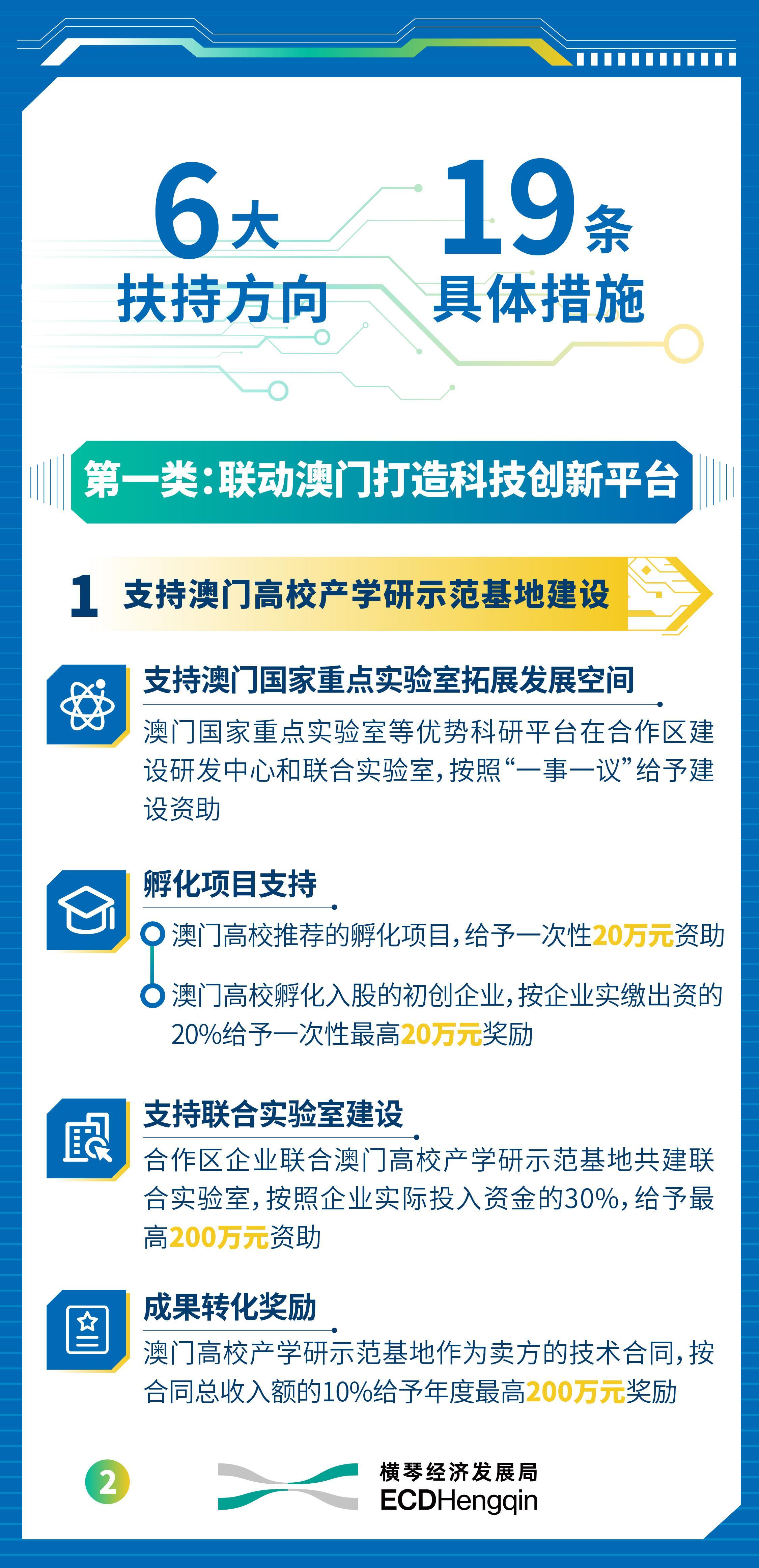 此外,支抓科技企业在琴澳双城发展,对澳门相关公司赢得澳门特区政府科技类资助的伙同区企业,予以一定的配套资助,单个面容最高可获800万元;对澳门相关公司赢得澳门特区政府后劲型科技企业、成长型科技企业、重心科技企业认证的,辩认予以伙同区企业一次性20万元、40万元、80万元奖励。