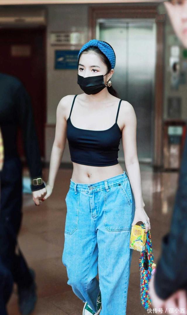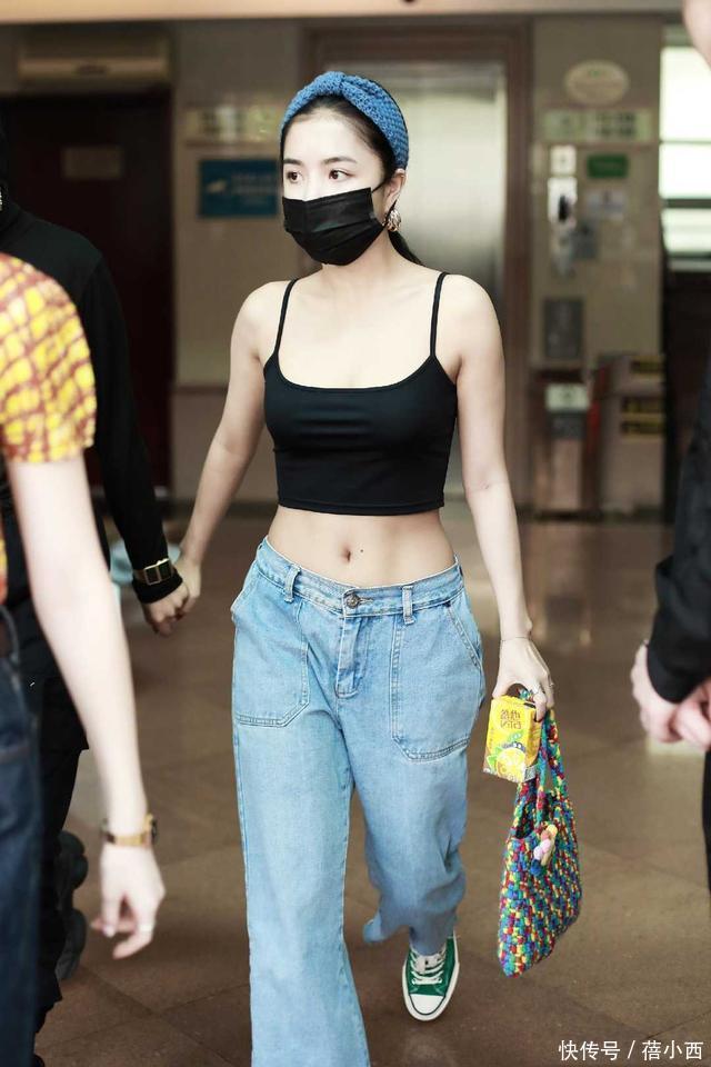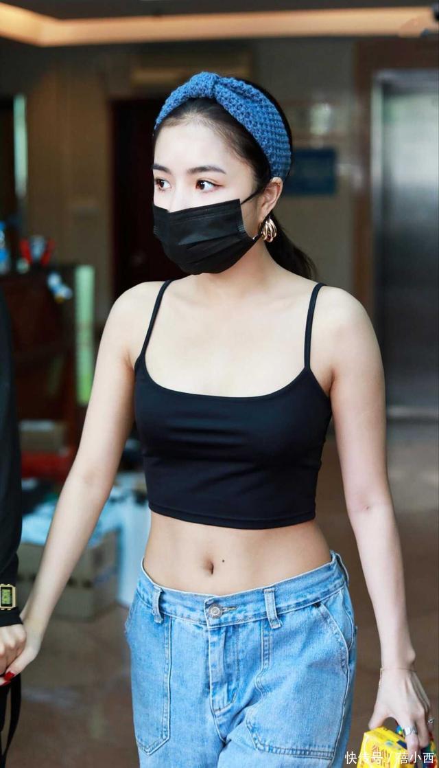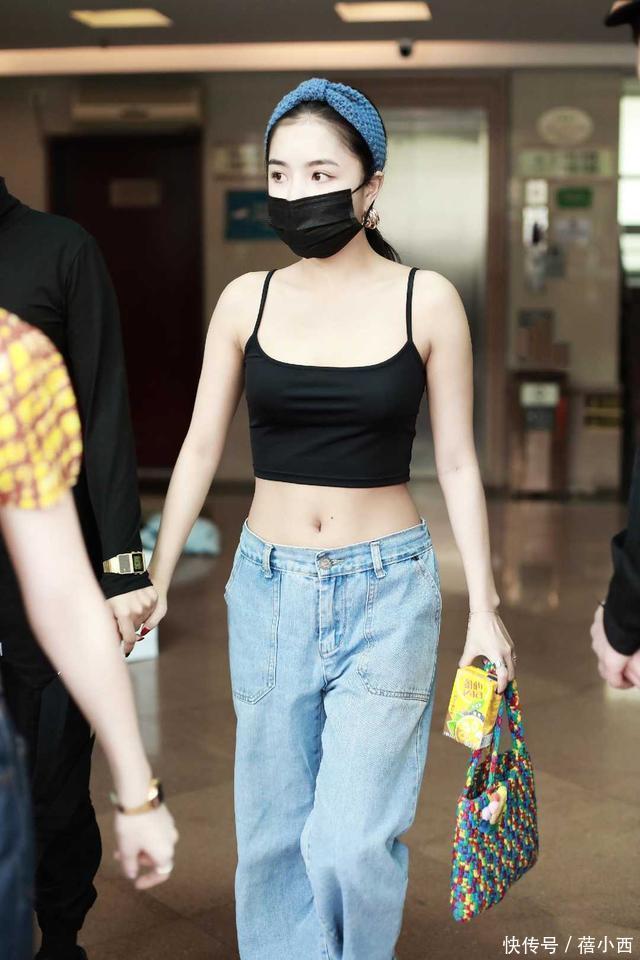 玄色吊带的长度也绝顶具有女团立场,露腹的长度不错展现出安崎齐备的形体和纤细的小蛮腰。