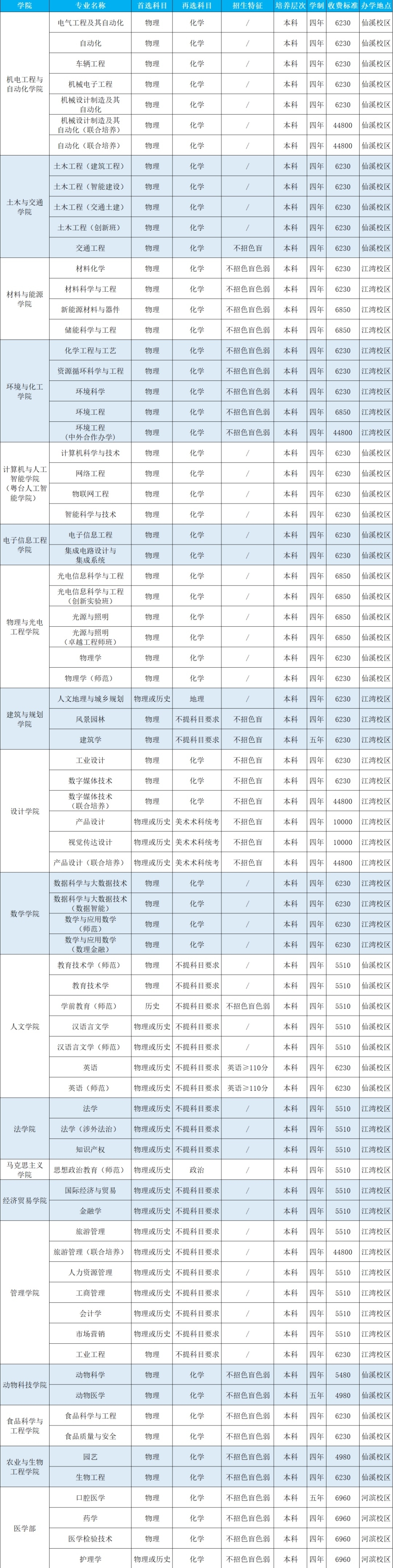 2.膏火单元为“元/学年”,所有专科的住宿费均为“750-1700元/学年”;