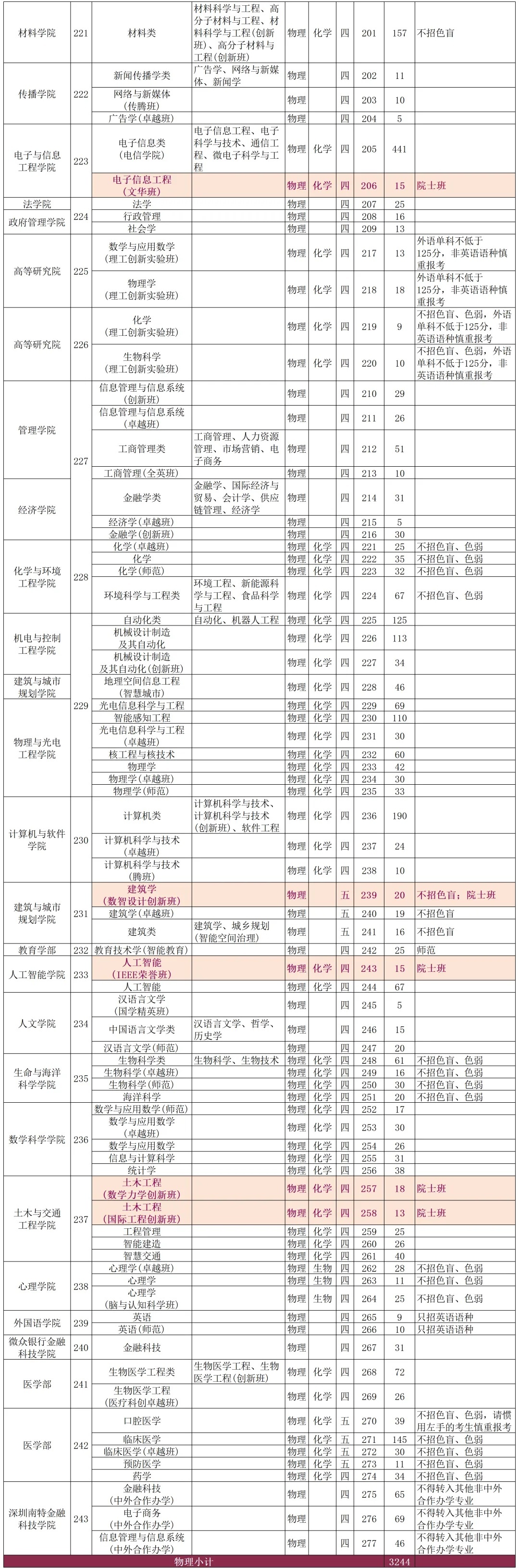 4.交通输送、生物医学工程、智能医学工程、运用物理学、光电信息科学与工程、智能感知工程、药学、中药学、生物制药、艺术与科技、环境想象、服装与衣饰想象专科不招色盲。