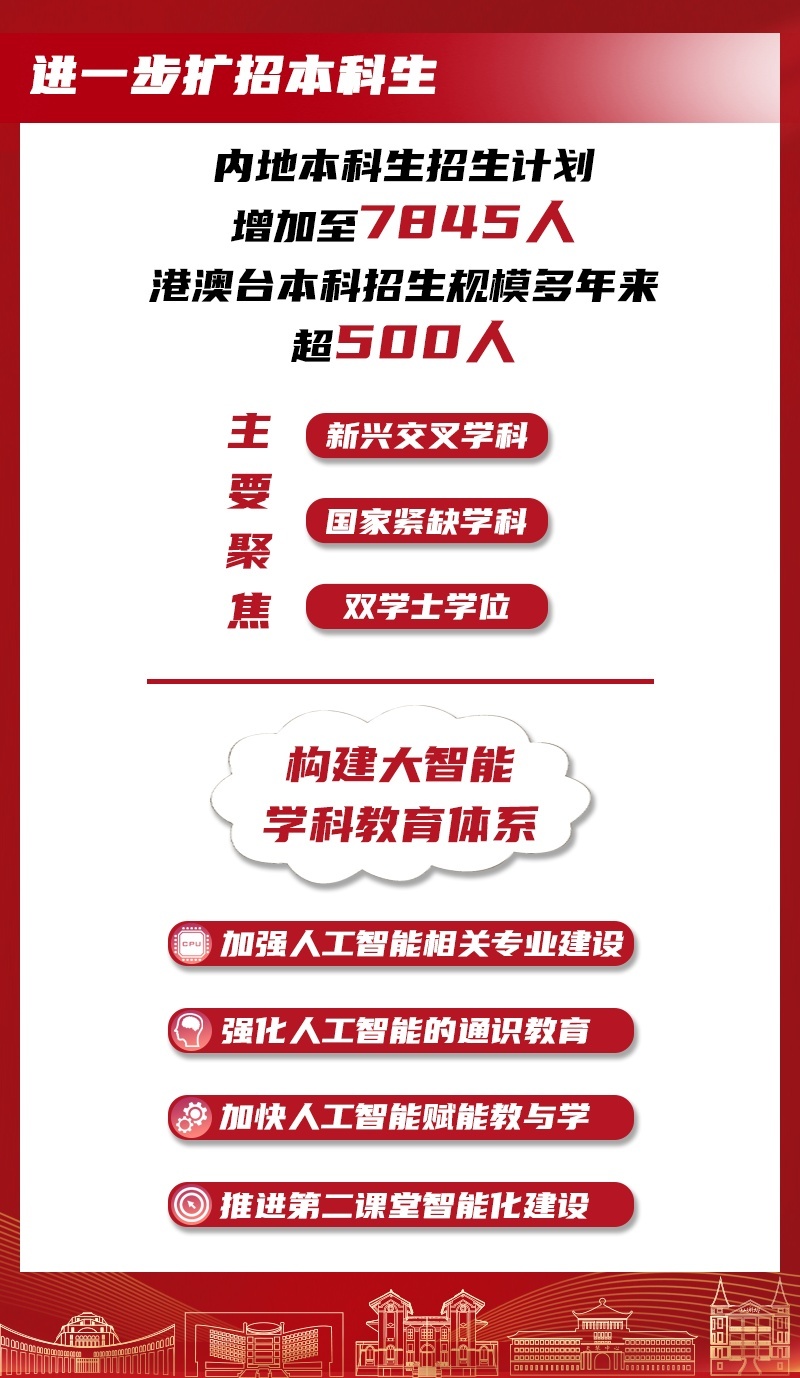 本年新增的招生有盘算推算主要聚焦于新兴交叉学科、国度紧缺学科以及双学士学位等复合型东谈主才培养形态,旨在鼓励要点领域拔尖更始东谈主才的培养,进一步强化职业国度要紧策略和粤港澳大湾区发展需求的针对性和才气。学校在寰宇绝大部分省区市皆加多了招生东谈主数,新增招生专科和特质形态。