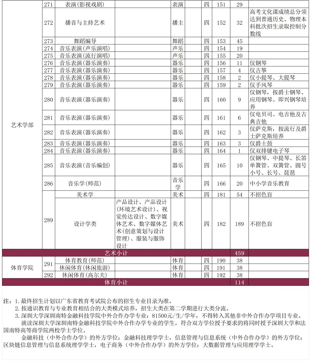 注:1.上表艺体类分数为详细分;
