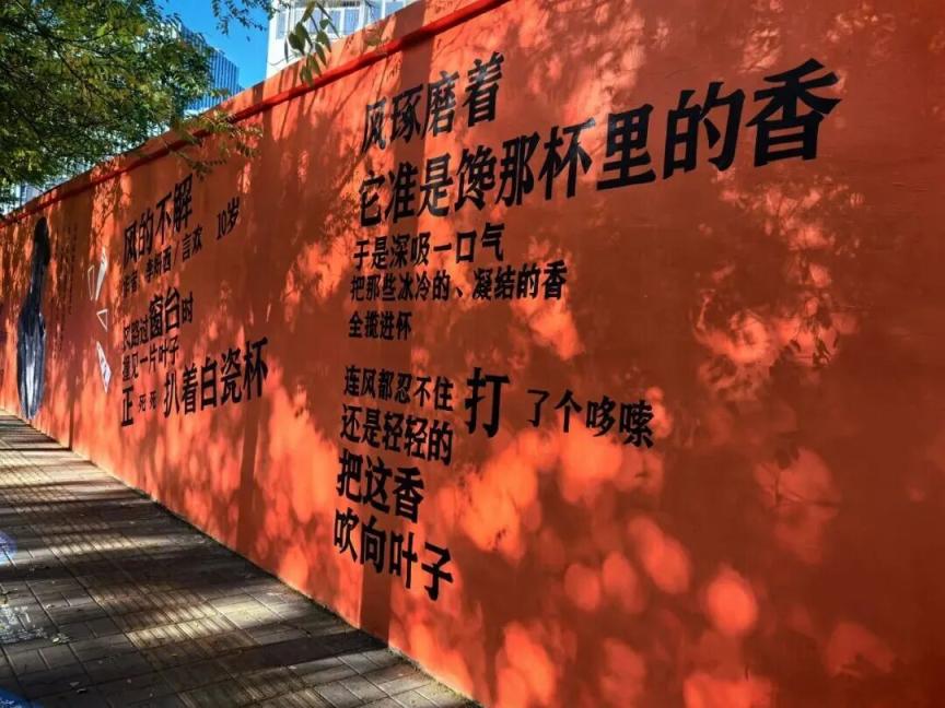 本次“马路诗歌节”行径以“活命不在别处”为核神志念,糟蹋了传统诗歌的展示边界,通过墙面题诗、大地嵌句、设施挂牌等多元神色,让诗歌与马路空间深度和会,构建起千里浸式的诗意场景。在这里,学生、住户、做事东说念主士的原创诗歌与中西方经典名句交相照映,交集布局的“诗歌聚落”让墙面修葺一新;“踏诗而行”的互动旅途更是步步藏趣。