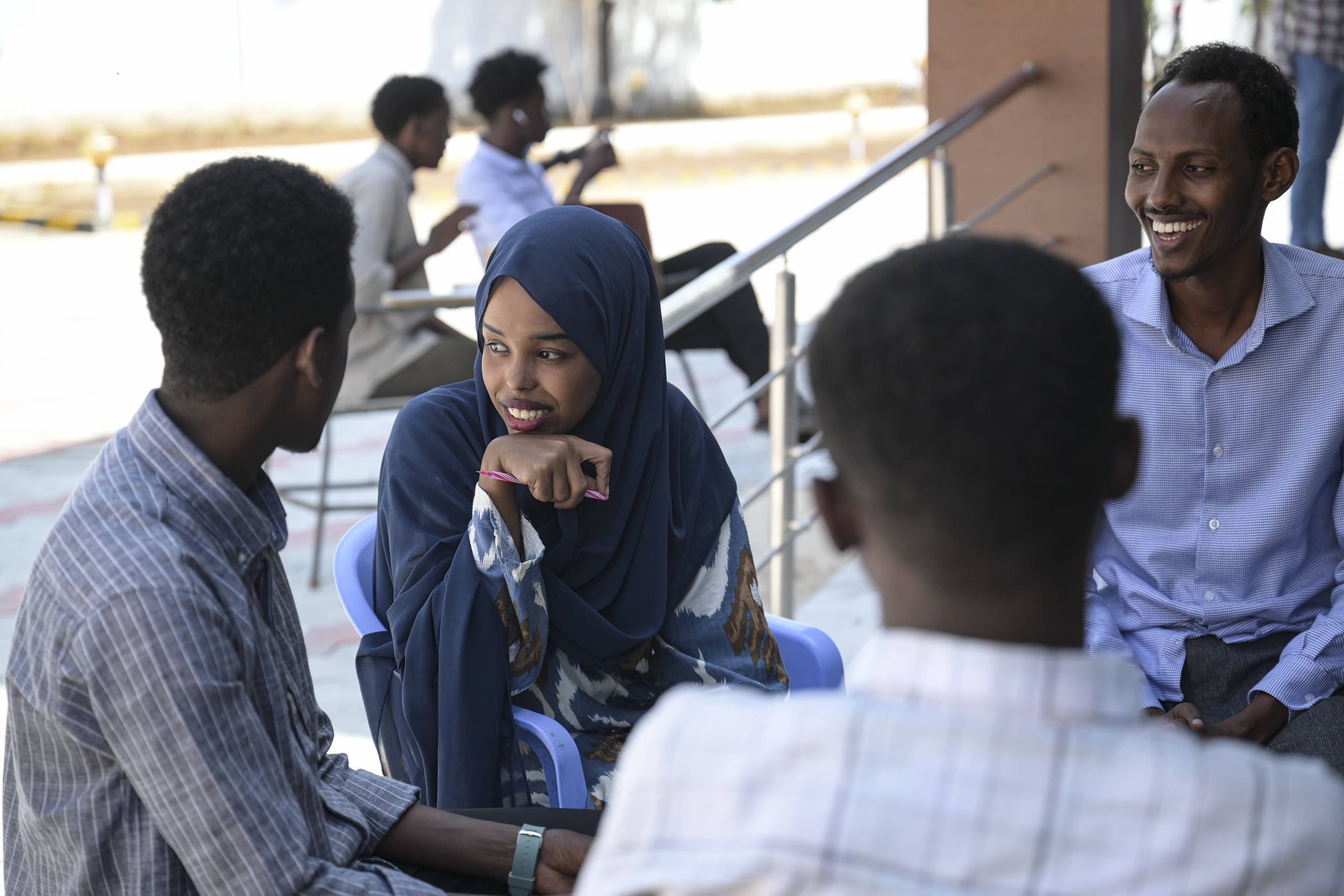 1月11日,在索马里都门摩加迪沙的索马里国立大学,学生们在校园里交谈。新华社记者杨光摄记者近日访问索马里都门摩加迪沙,发现当地安全形势部分改善,社会次第和民生徐徐收复,逃离到邻国的索马里东谈主运行复返家园,尝试收复坐褥。