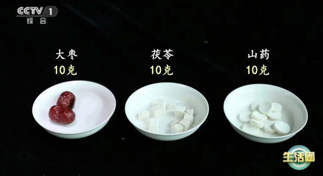 取大枣、茯苓、山药各10克,用热水平直冲泡或用养生壶煮15分钟。