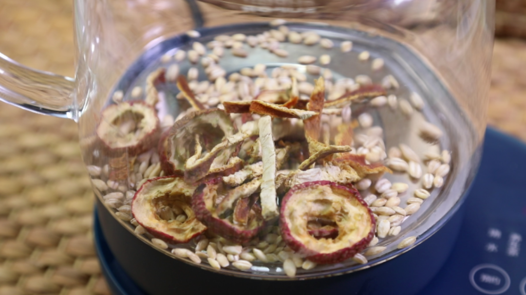 取大麦15克、山楂10克、陈皮5克,用热水平直冲泡或用养生壶煮15分钟。